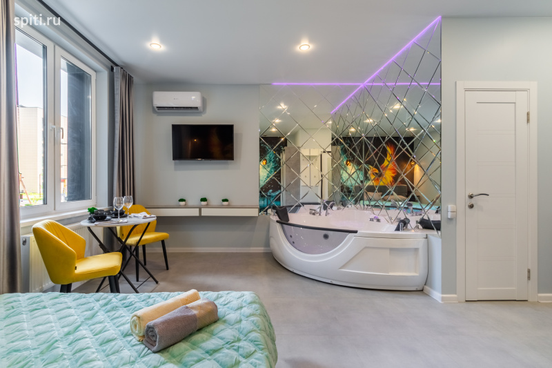 ✨ Дизайнерская студия с джакузи в новом ЖК «Миниполис Дивное» ✨ Романтическая атмосфера, стильный интерьер и полный комфорт ✨ Джакузи прямо в комнате — идеально для отдыха вдвоём ✨ Удобный выезд в Москву и аэропорты, спокойный современный район О квартире Уютная и стильная студия в новом жилом комплексе «Миниполис Дивное» (г. Видное). Отличный вариант для романтического отдыха, коротких поездок и комфортного проживания. ✨ В квартире есть всё для комфортного пребывания: — Удобная двуспальная кровать — Джакузи в зоне отдыха — Кондиционе — Smart TV с Wi-Fi и функцией трансляции с телефона — Быстрый Wi-Fi до 250 Мбит/с — Кухонная зона: плита, СВЧ, холодильник, чайник, посуда — Постельное бельё, полотенца, тапочки — Фен, утюг, гигиенические принадлежности Стирка и сушка — дополнительная платная услуга. Локация — Новый современный ЖК с благоустроенной территорией — Магазины, кафе, прогулочные зоны рядом — Удобный выезд в Москву и на основные трассы ✨ Кому подойдёт квартира: — Командировочным — Парам — Тем, кто ищет спокойное жильё рядом с парками ✨ Важно: — Квартира не сдаётся для мероприятий и шумных компаний — Курение запрещено ???? Детская кроватка — по запросу ???? Проживание с животными — по согласованию ✨ Условия: — Без курения и вечеринок — Залог 2000 ₽ — Заезд с 15:00, выезд до 12:00 — Бесконтактное заселение, инструкция по заезду — в WhatsApp или МАКС — Предоставляем отчётные документы ✨ Поздний выезд: До 15:00 — 50% от стоимости суток После 15:00 — 100% стоимости суток Нажимайте «Забронировать» — хорошие даты разбирают быстро! Будем рады видеть вас в наших апартаментах ???? Дивная студия 1
